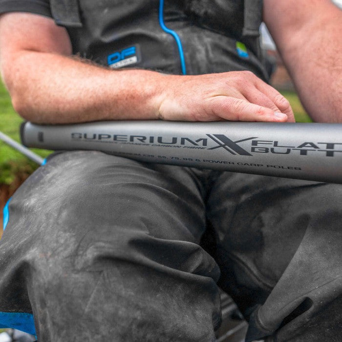 Superium X Poles Created using the finest Japanese carbon technology, the Superium range of poles deliver unparalleled rigidity, strength and balance across all models giving you confidence on the bank. Dura wrap technology and reinforcements in all the right places give the poles superb durability and longevity, key when fishing todays high catch rate venues. Superium X top kits have kept all the same fantastic features as before, but the depth markers have an update, now displaying in 1inch increments, perfect for fine tuning rigs on the bank. Top kits are also identical across all models, so whether you are fishing with the Superium X Margin, or the flagship X95 you know that as well as being top quality, the kits are also interchangeable. Many poles in the range feature EVA end caps, pole end protectors and high quality Supera X Holdalls, while the premium models come supplied with the market leading Hardcase Pole Safe for total protection during transit.